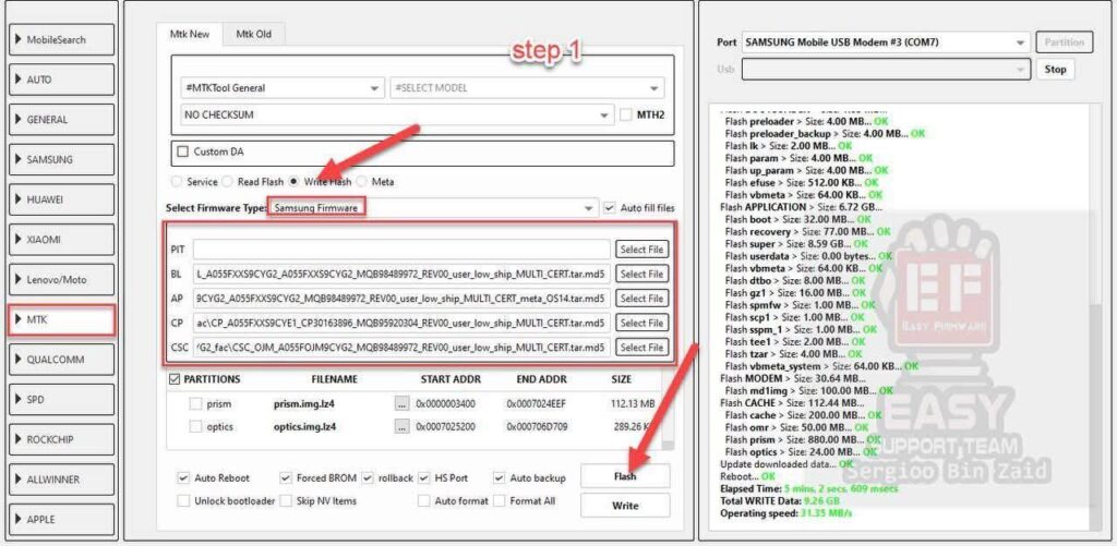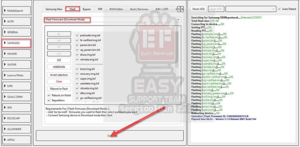 3- نقوم بتفليش الروم بواسطه eft او انلوك تول بوضع بيروم فقط اطفي الهاتف وقم بالضغط علي زر خفض ورفع الصوت مثل الصوره